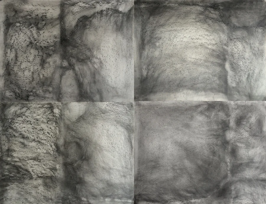 Charcoal powder, graphite powder and black pigment on paper, 260 x 135 cm