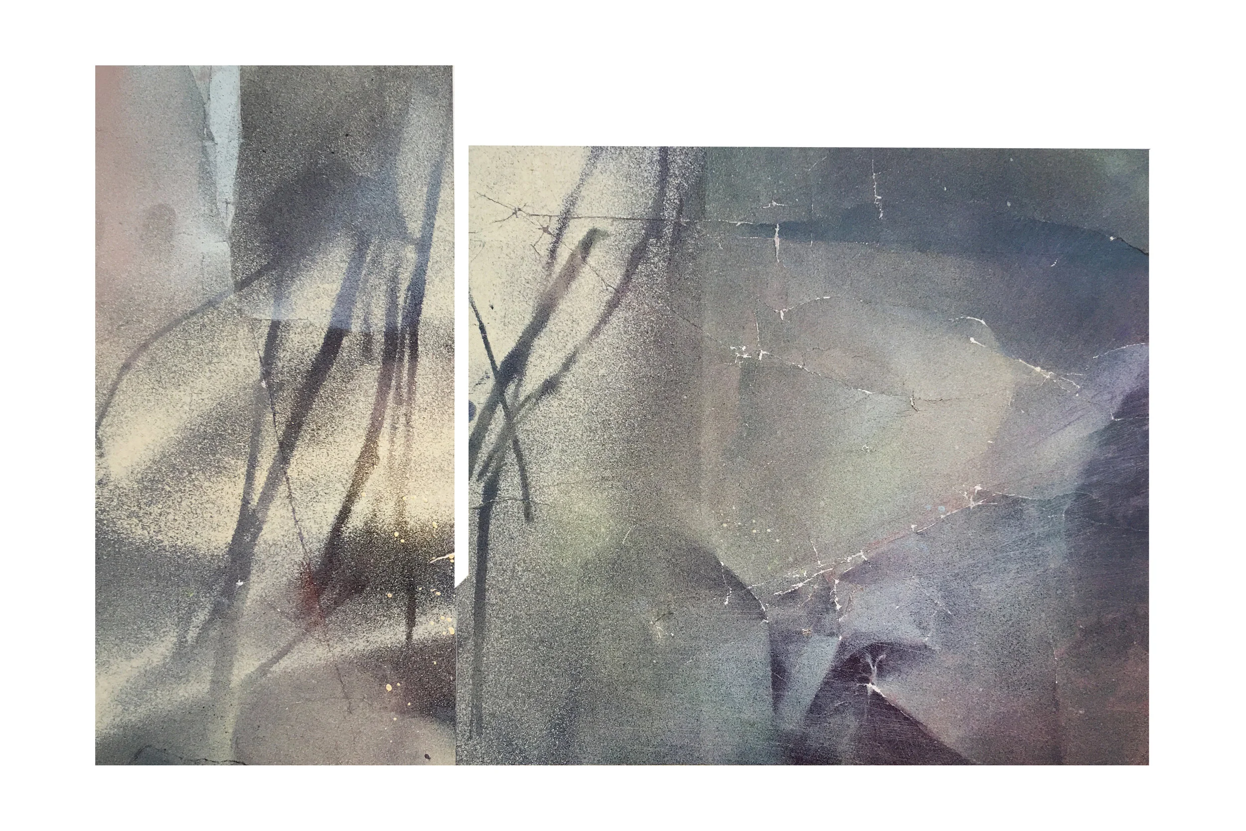Oil pastell, spray paint, paraffin wax and resin on paper