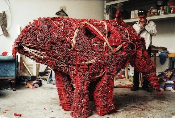 Fire crackers, fabric, metal